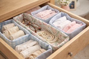 Psychologically, the effectiveness of this trick goes beyond tidiness. Human minds respond instinctively to softness, clarity, and containment. Opening a drawer lined with fabric creates a visual and sensory experience that feels gentle rather than jarring. Items resting against cotton appear cared for, even when they are everyday objects. This reduces the subtle stress that clutter and disorder can create, particularly in private spaces like bedrooms or closets where routines begin and end. When belongings have a place that feels intentional, the act of using them becomes calmer. Choosing clothes, folding laundry, or putting items away feels less like a chore and more like maintenance of peace. Over time, these small moments influence overall well-being. The drawer becomes a quiet anchor, reinforcing the idea that calm does not have to be grand or dramatic to be meaningful. It can exist in something as ordinary as a neatly lined space waiting patiently to be used.